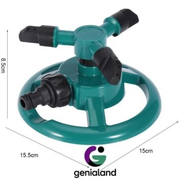 Rotación Automática de 360 Grados: Equipado con boquillas giratorias de precisión que distribuyen el agua en un círculo completo, garantizando una cobertura total sin zonas muertas.
