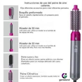 Sistema de Accesorios Intercambiables: Incluye 5 cabezales distintos que se acoplan con un solo clic para rizar, alisar o dar volumen.