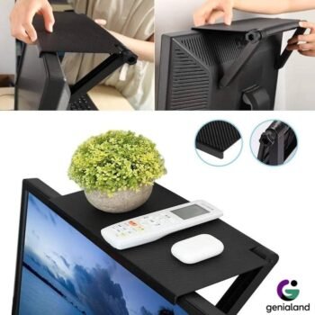 Diseñado para aprovechar el espacio que normalmente se desperdicia sobre tu televisor o monitor, este soporte es ideal para hogares modernos y oficinas donde la organización es prioridad. Es el accesorio perfecto para mantener tus dispositivos esenciales siempre a la mano y fuera del camino.