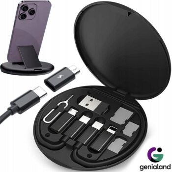 Función de Soporte Integrada: El estuche no solo guarda cables, sino que se transforma en un práctico soporte para celular, ideal para ver videos o realizar videollamadas con las manos libres.