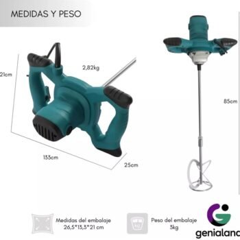 Lleva la eficiencia de tus proyectos al siguiente nivel con esta potente mezcladora batidora de 960 W. Diseñada para enfrentar los trabajos más exigentes, esta herramienta es la solución definitiva para lograr mezclas perfectas de cemento, pintura, hormigón, barro y lechada en tiempo récord. Su motor de alto rendimiento garantiza una consistencia homogénea, eliminando el esfuerzo manual y reduciendo la fatiga en jornadas extensas.