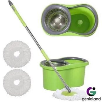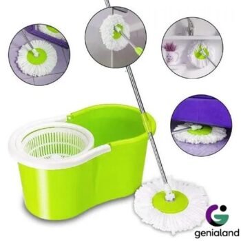 Balde centrífugo, mango extensible y 2 paños de microfibra adicionales.