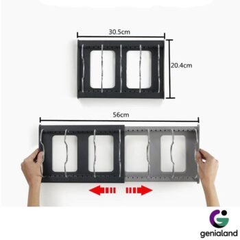 Base Retráctil Inteligente: La estructura se expande desde los 30,5 cm hasta los 56 cm, adaptándose perfectamente al tamaño de tu gabinete o encimera.