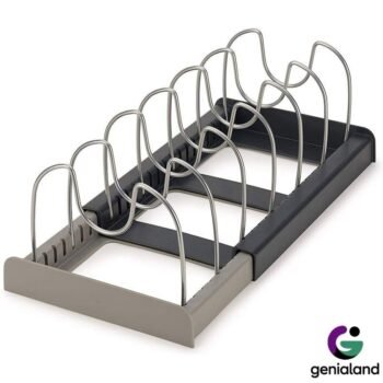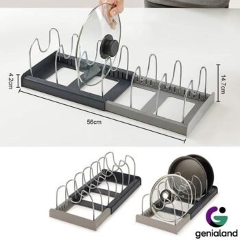Este estante ajustable de acero inoxidable ha sido diseñado para quienes valoran la eficiencia y el cuidado de sus utensilios. Es ideal para cocinas modernas, departamentos con espacio limitado o para cualquier amante de la cocina que desee mantener sus sartenes antiadherentes y tapas de vidrio impecables y siempre al alcance de la mano.