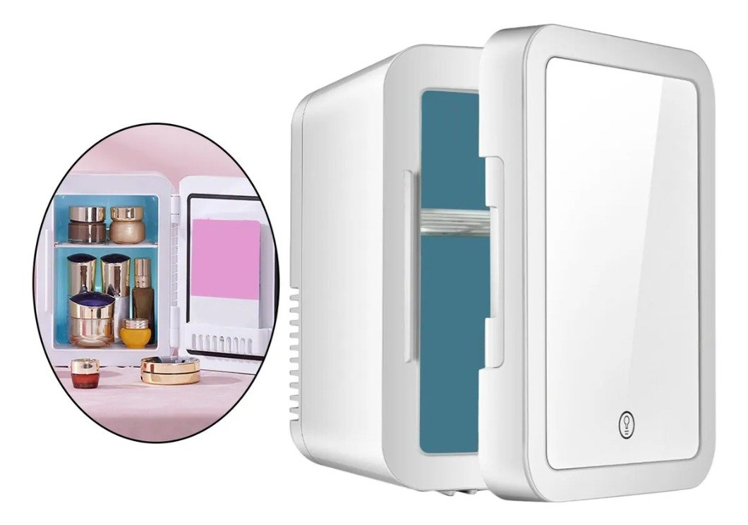 Es la solución perfecta tanto para quienes buscan prolongar la vida útil de sus cremas y sueros, como para quienes necesitan un espacio compacto en la oficina o el auto para bebidas y alimentos. Su diseño elegante con frontal de espejo y luz LED integrada lo convierte en un objeto decorativo funcional que eleva cualquier espacio.