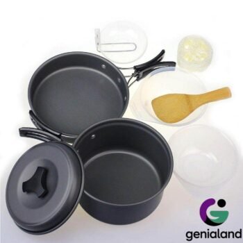 Diseñado con una estructura inteligente y apilable, este set transforma tu experiencia en la naturaleza. Es el equipo ideal para mochileros y familias aventureras que no quieren sacrificar la calidad de su alimentación mientras exploran rutas nuevas, garantizando que tengas todo lo necesario para saltear, hervir y servir en un paquete que cabe en la palma de tu mano.